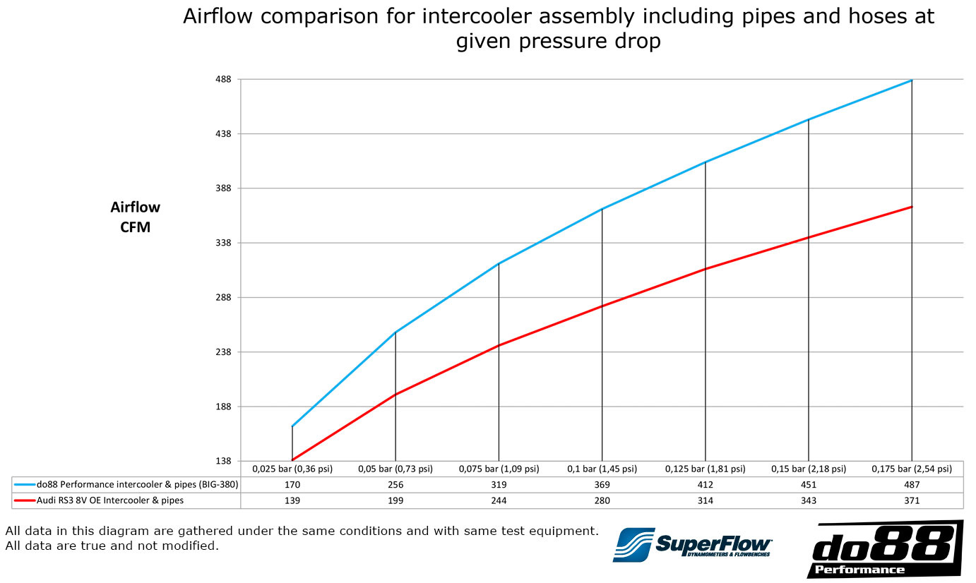 Das im Lieferumfang enthaltene do88 Ladedruckrohr-Kit ist so konzipiert, dass es die Leistung des do88 Performance Ladeluftkühlers verbessert. Die OEM-Ladedruckrohre haben mehrere ineffiziente Biegungen und verfügen nicht über ein leistungsoptimiertes Design. Unser Ladedruckrohr ist sowohl signifikant größer als auch vollständig strömungsoptimiert, was zu 31% mehr Durchfluss als beim OEM führt!