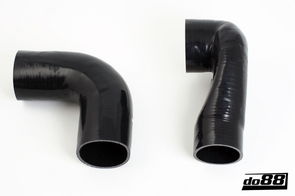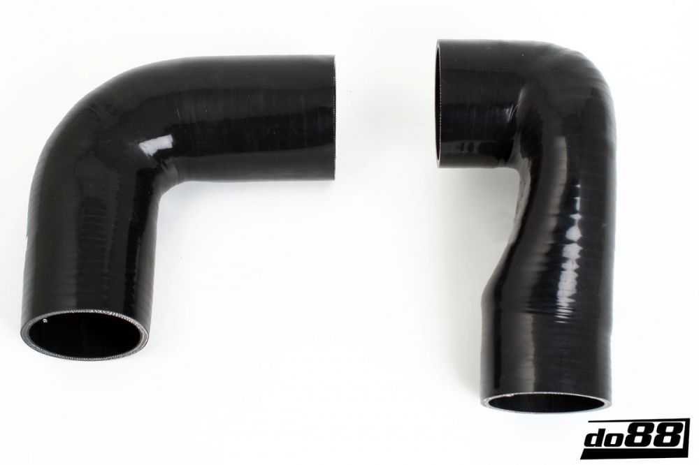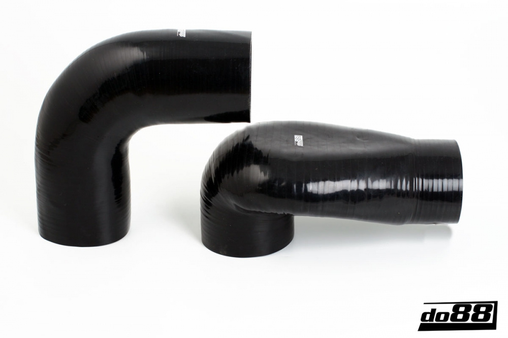 Ein von do88 entwickelter Spezialschlauch für einen hohen Durchfluss zum Ansaugtrakt, Turboeinlass usw., der an einer Stelle sitzt, wo ein herkömmlicher Silikonbogen zu viel Platz wegnehmen würde. Bei wenig Platz kann man vorzugsweise diesen Schlauch verwenden, der mit seinem cleveren Design guten Durchfluss trotz enger Radien garantiert. Siehe extra Bild mit einer Darstellung des geringen Platzverbrauches um den Anschluss, an dem der Schlauch angebracht wird.