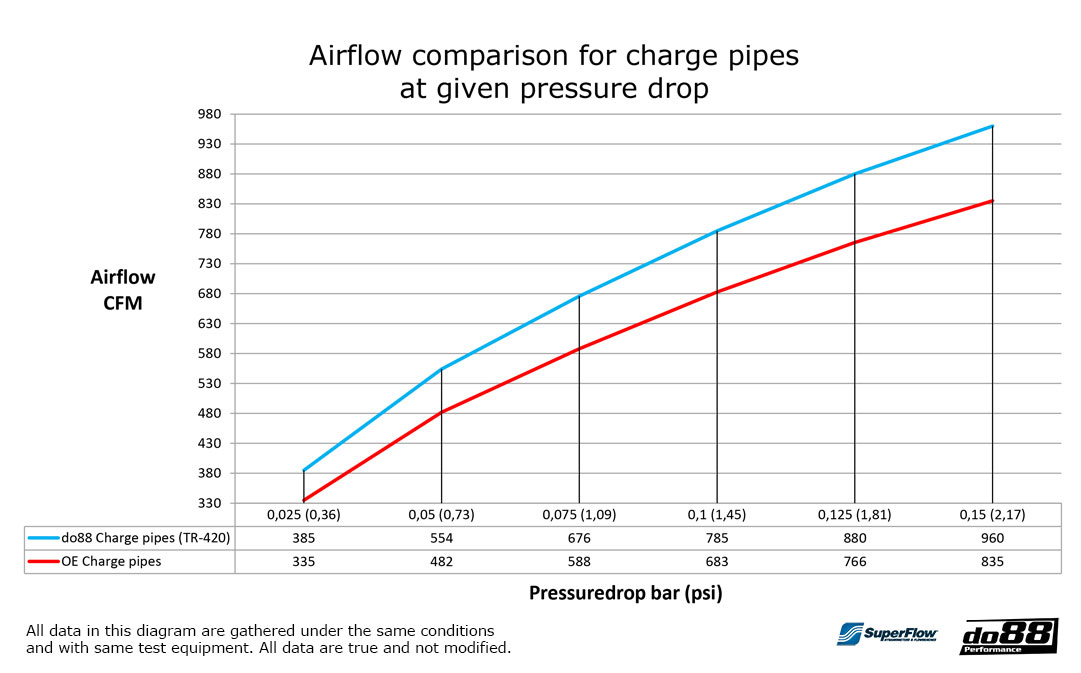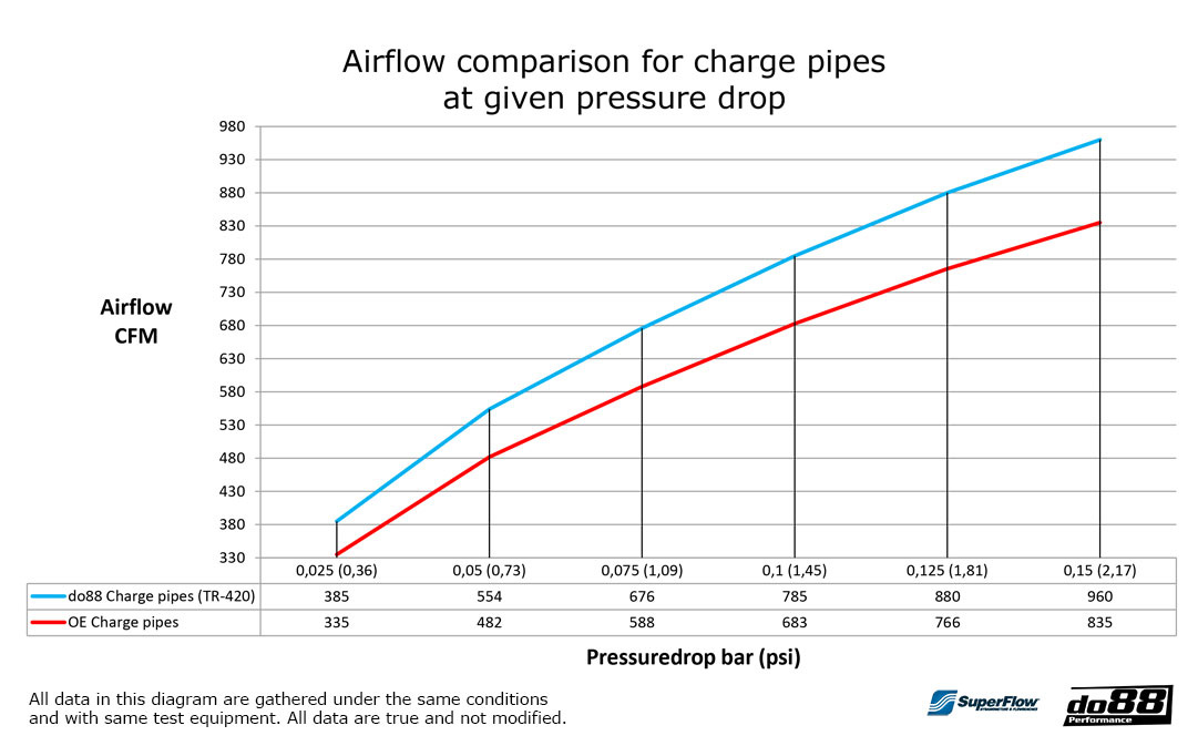 - Erreicht einen Durchfluss von 960 CFM bei 150mbar (2,17psi), deutlich besser als die 835 CFM des OEM.
