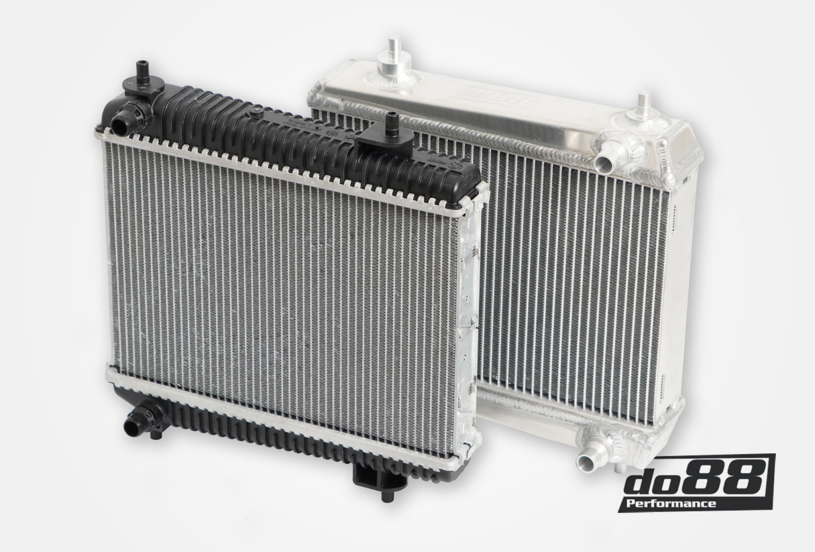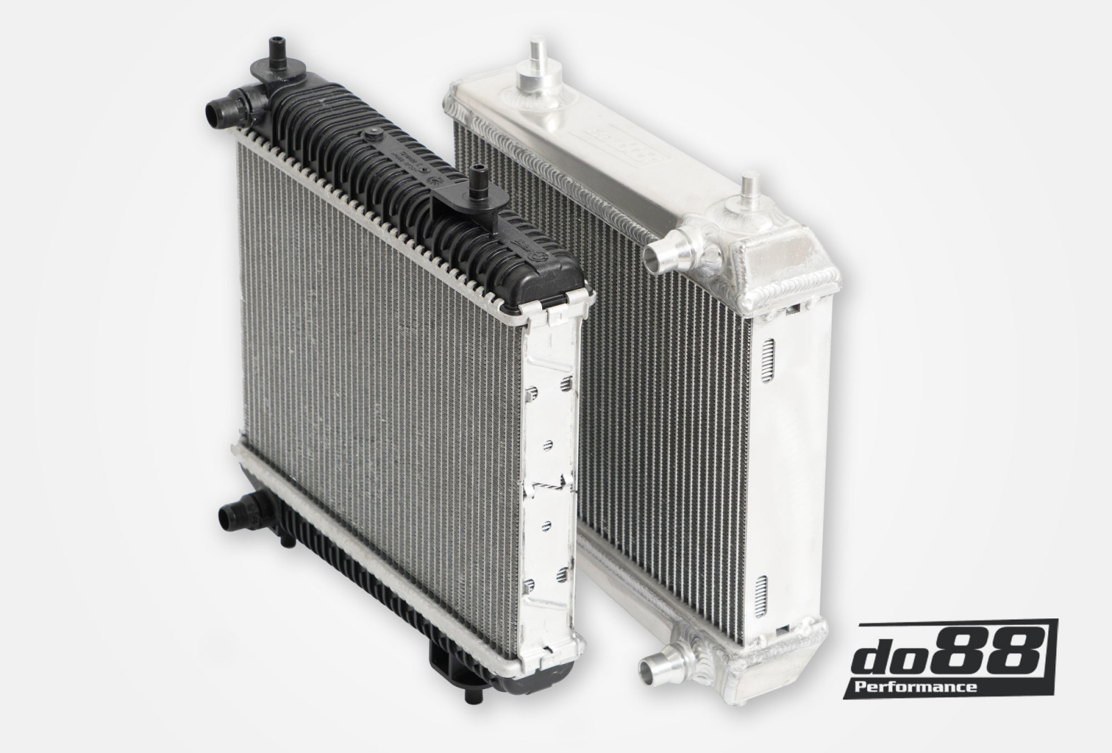 Glücklicherweise erlaubt der zur Verfügung stehende Designraum für die Zusatz-Wasserkühler eine Erhöhung sowohl der Frontfläche als auch der Netzstärke auf beiden Seiten des Autos. Der OE Wasserkühler ist für beide Seiten identisch, und unsere do88 Performance Wasserkühler sind als Ersatz für die linke und rechte Seite konzipiert. Wir verkaufen diese paarweise, weil das Aufrüsten nur eines Wasserkühlers nicht so effektiv ist wie das gleichzeitige Aufrüsten beider. Unsere Performance Zusatz-Wasserkühler bieten eine verbesserte Kühlkapazität, um das Überhitzen zu verhindern.