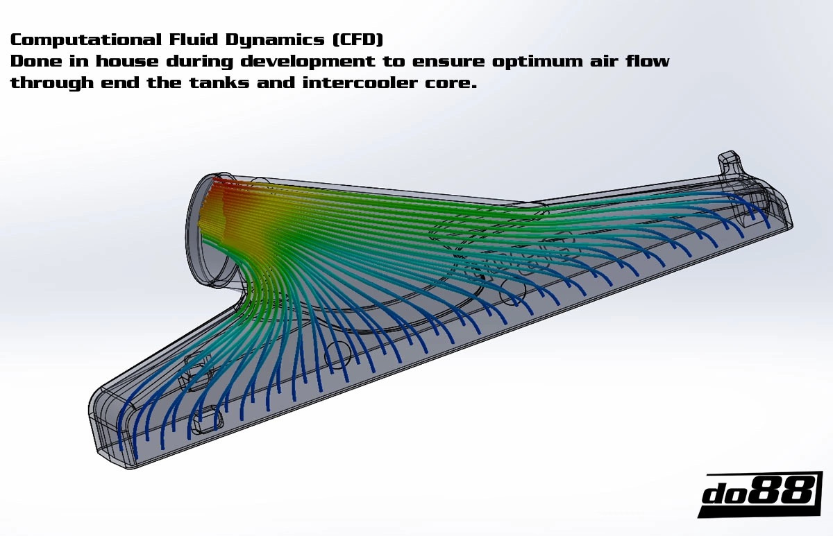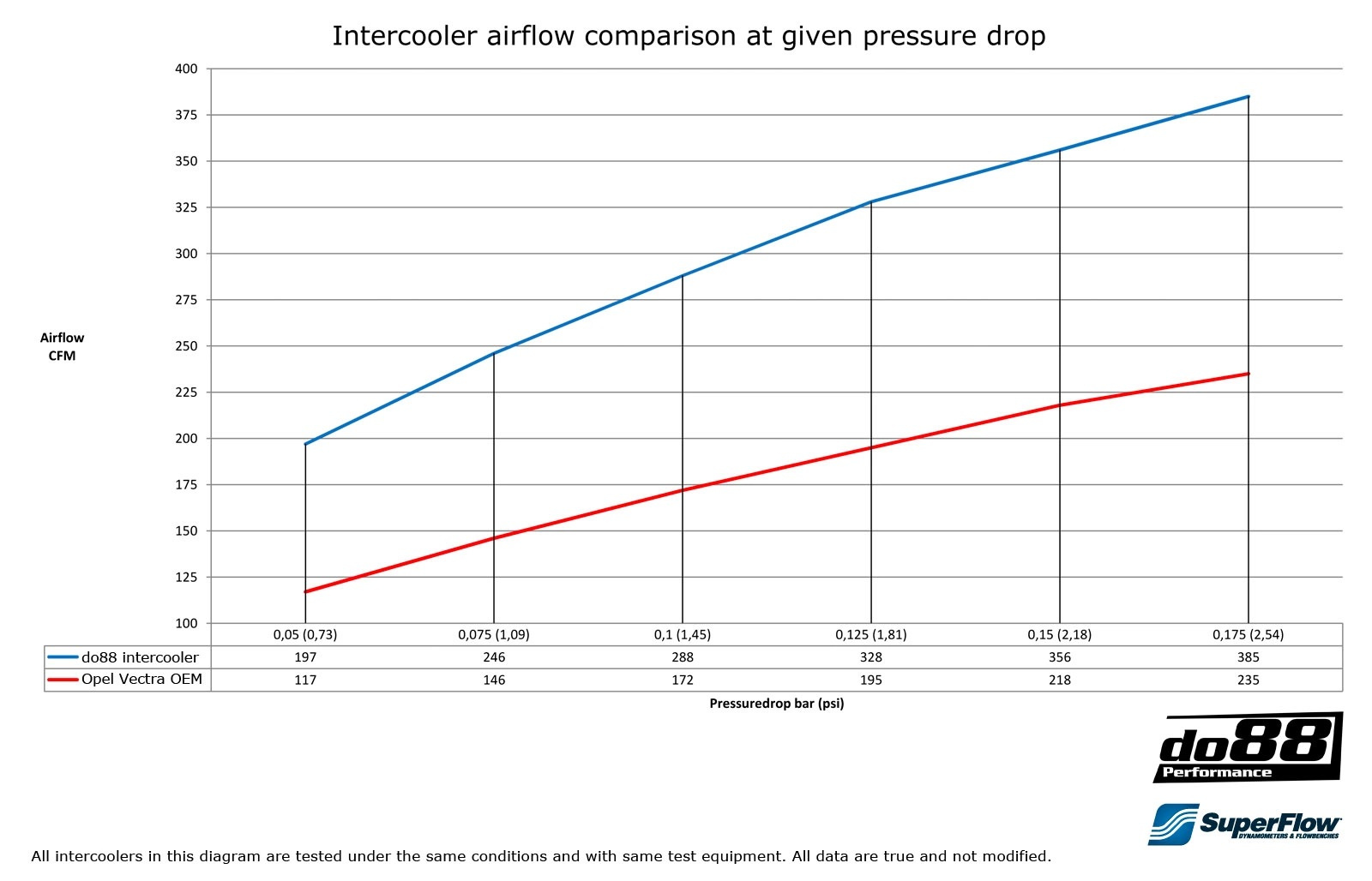 Ein gewöhnliches Missverständnis ist, dass man mit einem Ladeluftkühler in dieser Position keinen guten Kühleffekt erreicht und dass ein Ladeluftkühler, der an der Vorderseite montiert wird (FMIC), besser wäre. Tatsächlich ist der Hochleistungsladeluftkühler von do88 bei weitem besser als die meisten FMIC-Installationen, die aufgrund des Platzmangels eine weitaus kleinere Kühlfläche haben und bei denen häufig die Luftzufuhr durch z. B. Stoßfänger blockiert wird, sodass deren Kühleffekt häufig sogar schlechter ist als die des Originalkühlers.