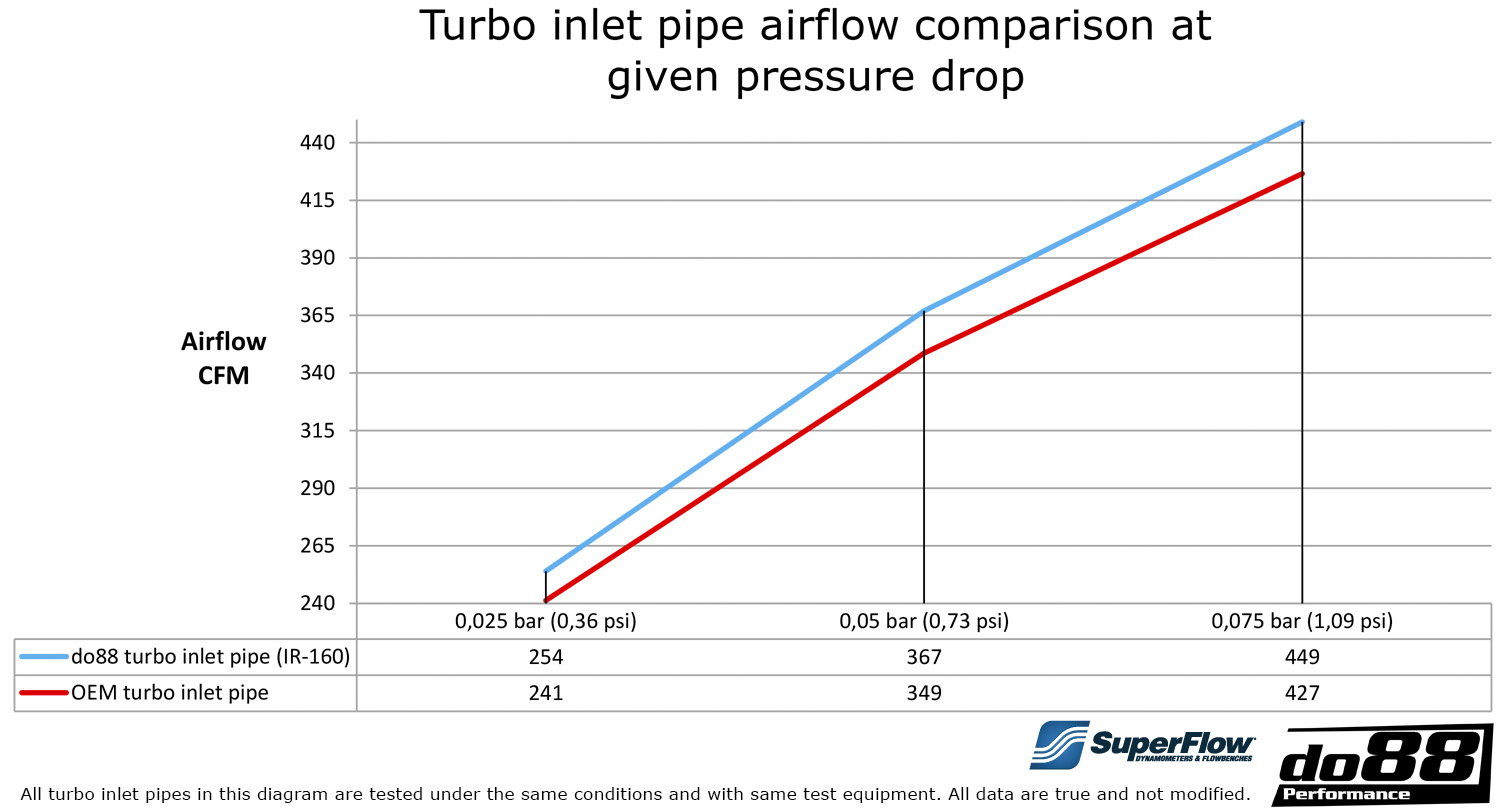 Das do88-Einlassrohr hat bei einem Druckverlust von 0,075 Bar einen Durchfluss von 449 CFM, im Vergleich zum 427 CFM Durchfluss des Originalsystems.