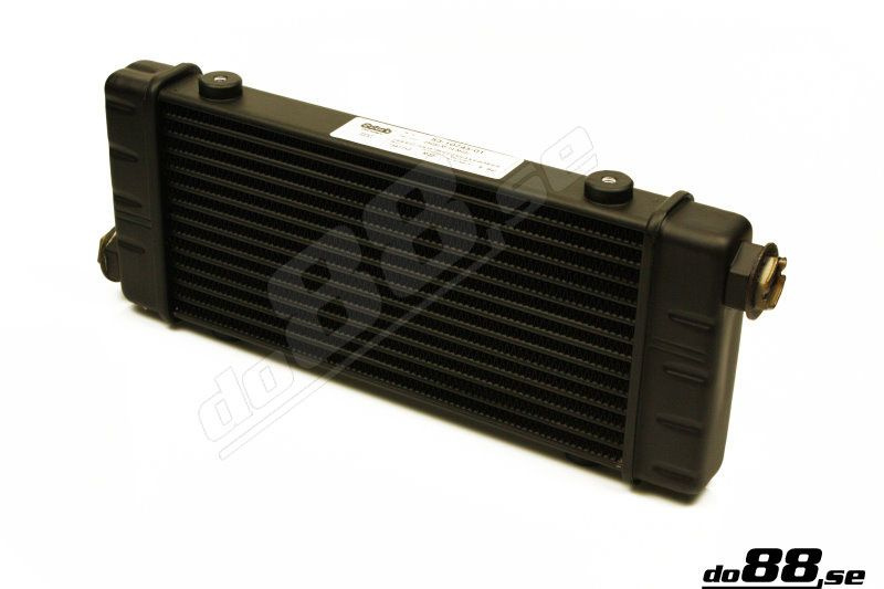 Ölkühler des schwedischen Herstellers Setrab aus mit schwarzer Epoxidfarbe lackiertem Aluminium. Der Kühler hat einen hohen Effekt und hält einem Betriebsdruck von 8 Bar stand. Slimline ist ein Kühlerserie von Setrab mit einem nur 31 mm breitem Kühler! Der Ölkühler wurde entwickelt, um sowohl Öl von einem Motor als auch von einem Automatikgetriebe zu kühlen.