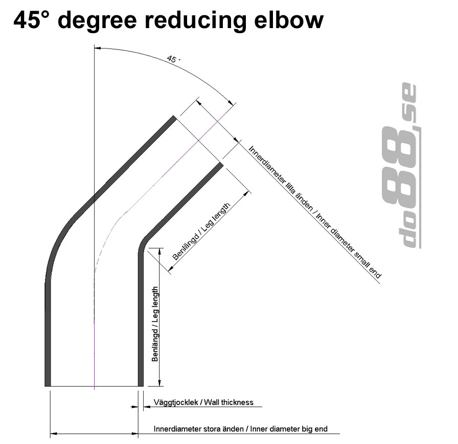 Schwarzer 45° Silikonbogen mit Reduzierung. Dieser Schlauch hat unterschiedliche Innendurchmesser an den beiden Enden. Der Schlauch kann zusammen mit Druckanwendungen wie Turbo und Ladeluftkühler sowie Sauganwendungen wie Luftfilter zum Ansaugen usw. verwendet werden. Der Schlauch ist außerdem für den Transport der Kühlflüssigkeit zum Kühlsystem geeignet.
