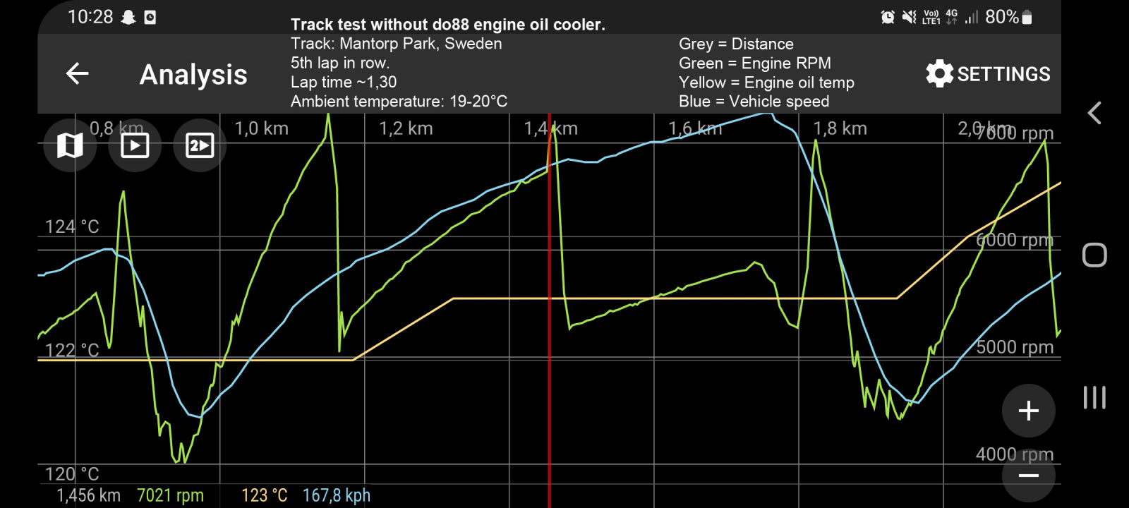Das do88 Yaris GR Performance-Upgrade-Ölkühler-Kit ist so konzipiert, dass es selbst bei schwerer Belastung wie z.B. Streckeneinsatz eine gesunde Motoröltemperatur aufrechterhält. Dies ist wirklich notwendig, da zu hohe Öltemperaturen den Motor schädigen können und bei Streckeneinsatz die Öltemperatur zu hoch und nur noch steigen wird. In derselben Situation mit dem do88 Racing Ölkühler ist die Temperatur signifikant niedriger und stabiler. Während unserer Tests hat der do88 Racing Ölkühler die Motoröltemperatur um ca. 20°C gesenkt!