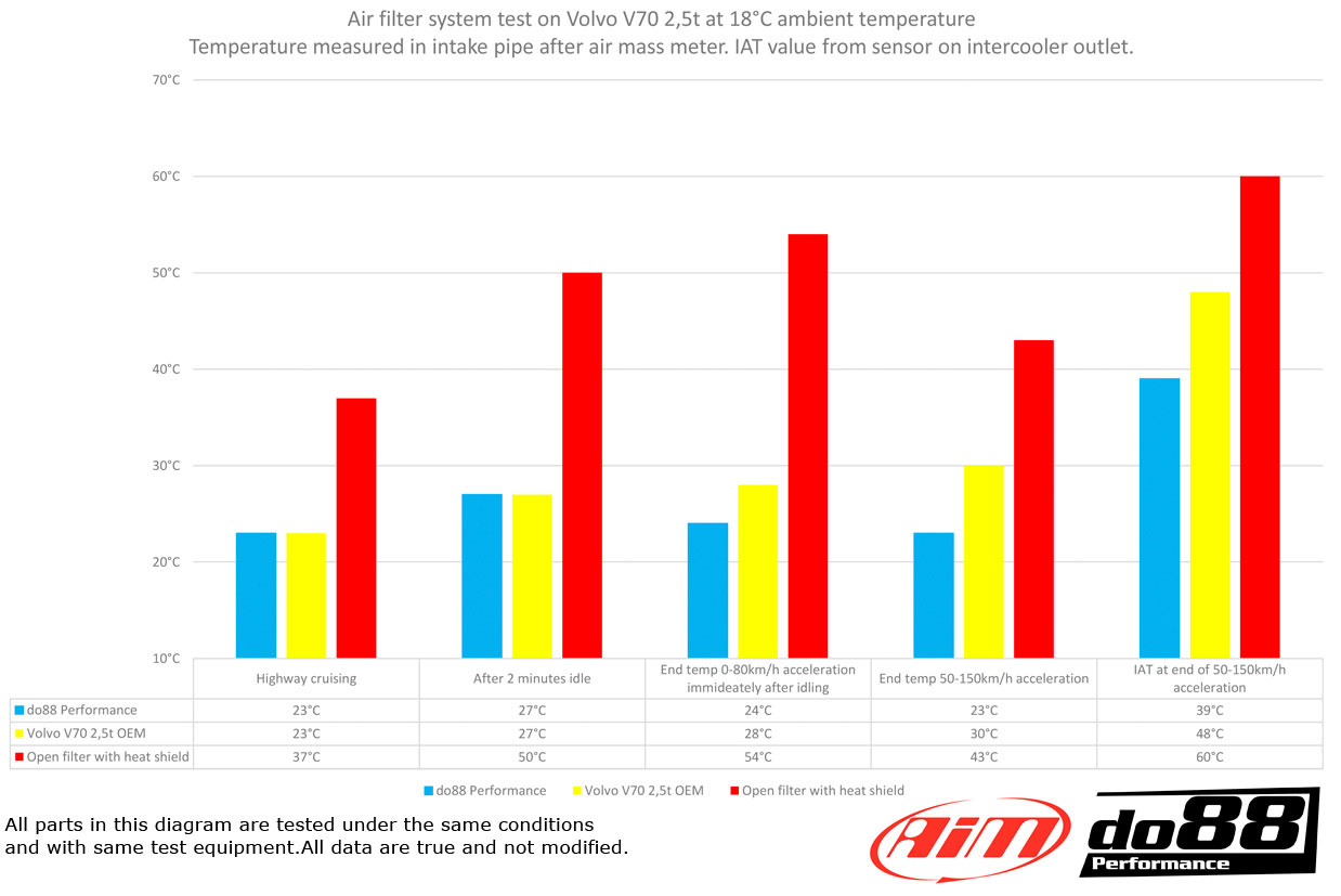 - 9 °C niedrigerer IAT als OEM und 21 °C niedriger als ein offener Filter mit Hitzeschild
