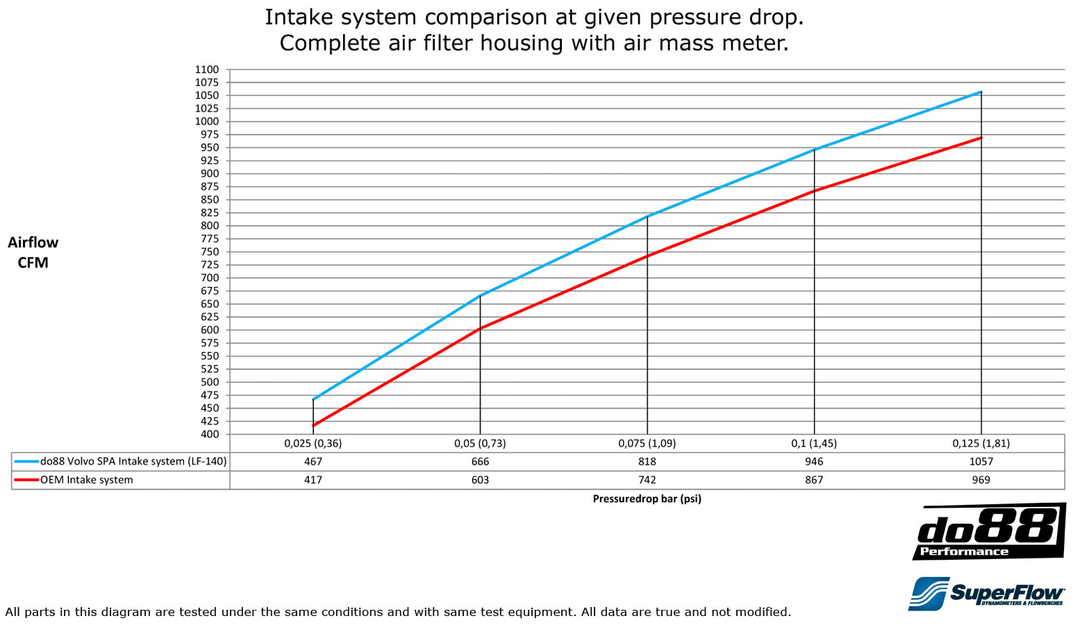 - 12% besserer Luftstrom als OEM. Verifiziert in unserer eigenen SuperFlow SF-1020 Flow Bench.